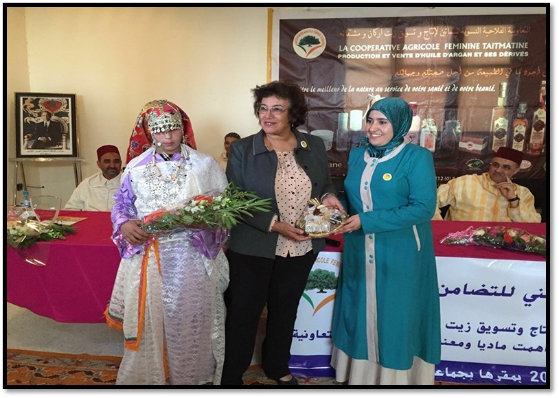 Cette trajectoire exemplaire a été couronnée par une reconnaissance nationale majeure : la coopérative a remporté le premier prix de la 10ᵉ édition du Prix d’Excellence de la Femme Marocaine, organisé sous la Haute Présidence de Sa Majesté le Roi Mohammed VI, par le Ministère de la Solidarité, de l’Insertion sociale et de la Famille. Ce prix souligne l’importance des efforts collectifs et met en lumière un modèle inspirant de leadership féminin rural, incarnant à la fois la persévérance, la compétence et l’engagement social.