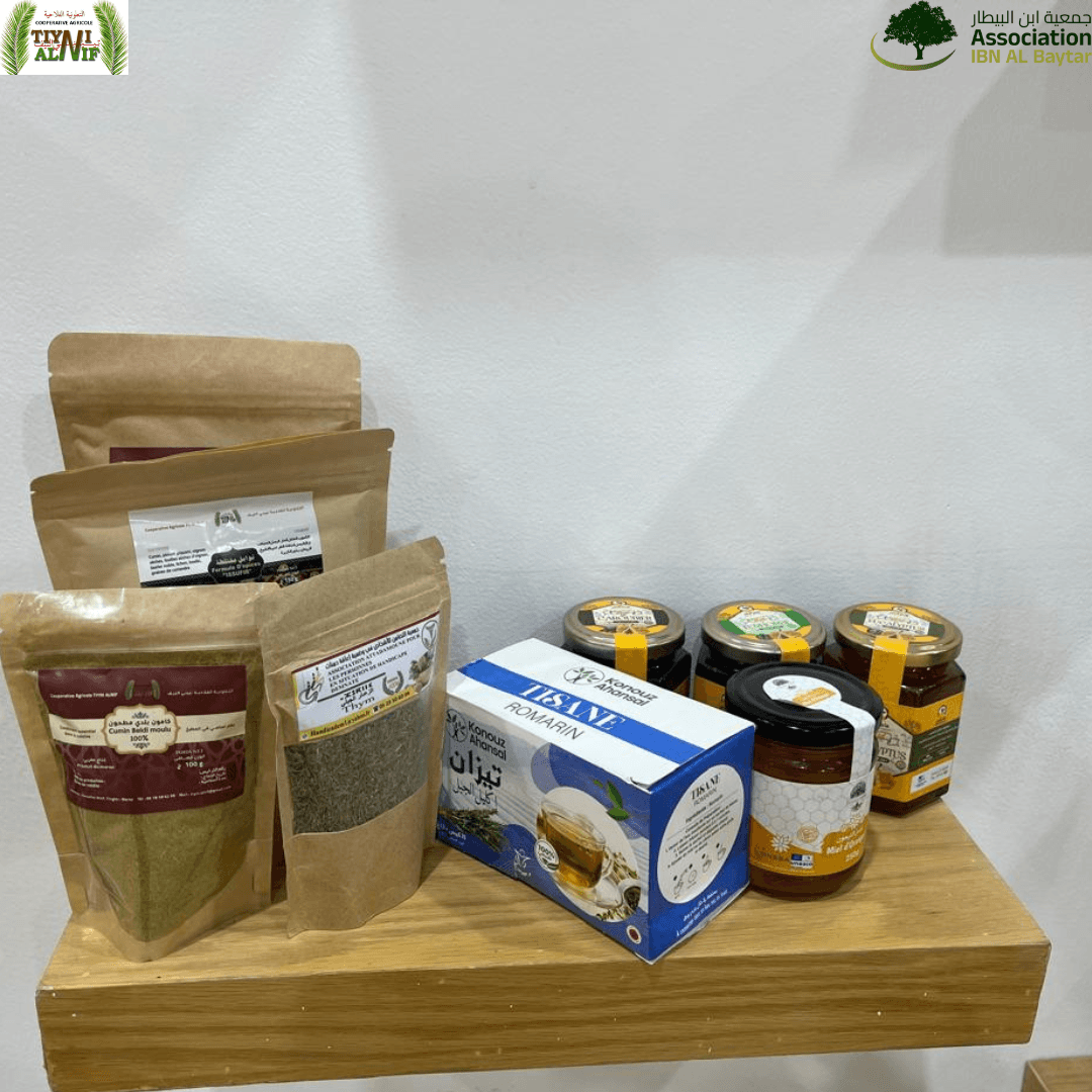 Dans le cadre de notre partenariat avec le PNUD, nous avons eu l'honneur de mettre en lumière le travail remarquable des femmes de la Coopérative tiyni alnif. Elles ont préparé des produits exceptionnels, qui illustrent parfaitement le savoir-faire local et l'authenticité des produits de la région. 🌿